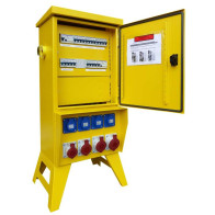 Armoire de distribution électrique en métal d'une puissance de 36 kVA 63A, pour branchement électrique provisoire sur chantier.
